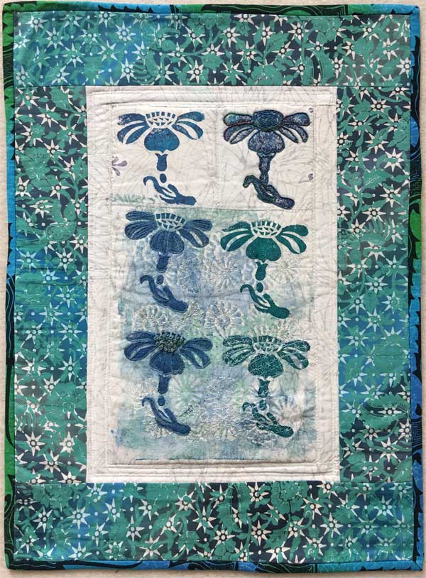 In my last post I promised that I would conclude my stint as the March artist by showing off some of the quilts that I’ve made (alone or collaborating with other artists) using wooden printing blocks.